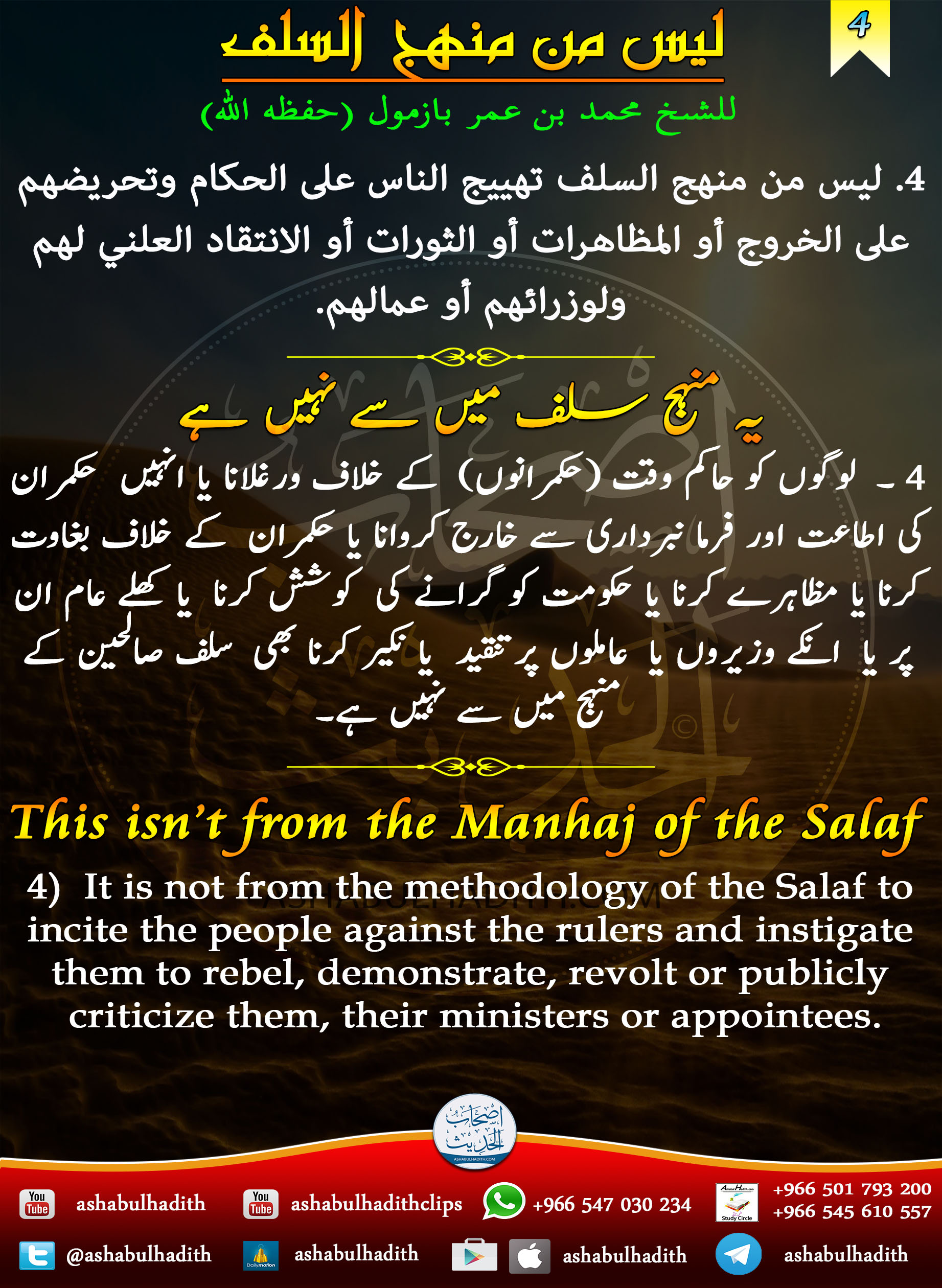 04. لوگوں کو حاکم وقت (حکمرانوں ) کے خلاف ورغلانا – یہ منہج سلف میں سے نہیں ہے